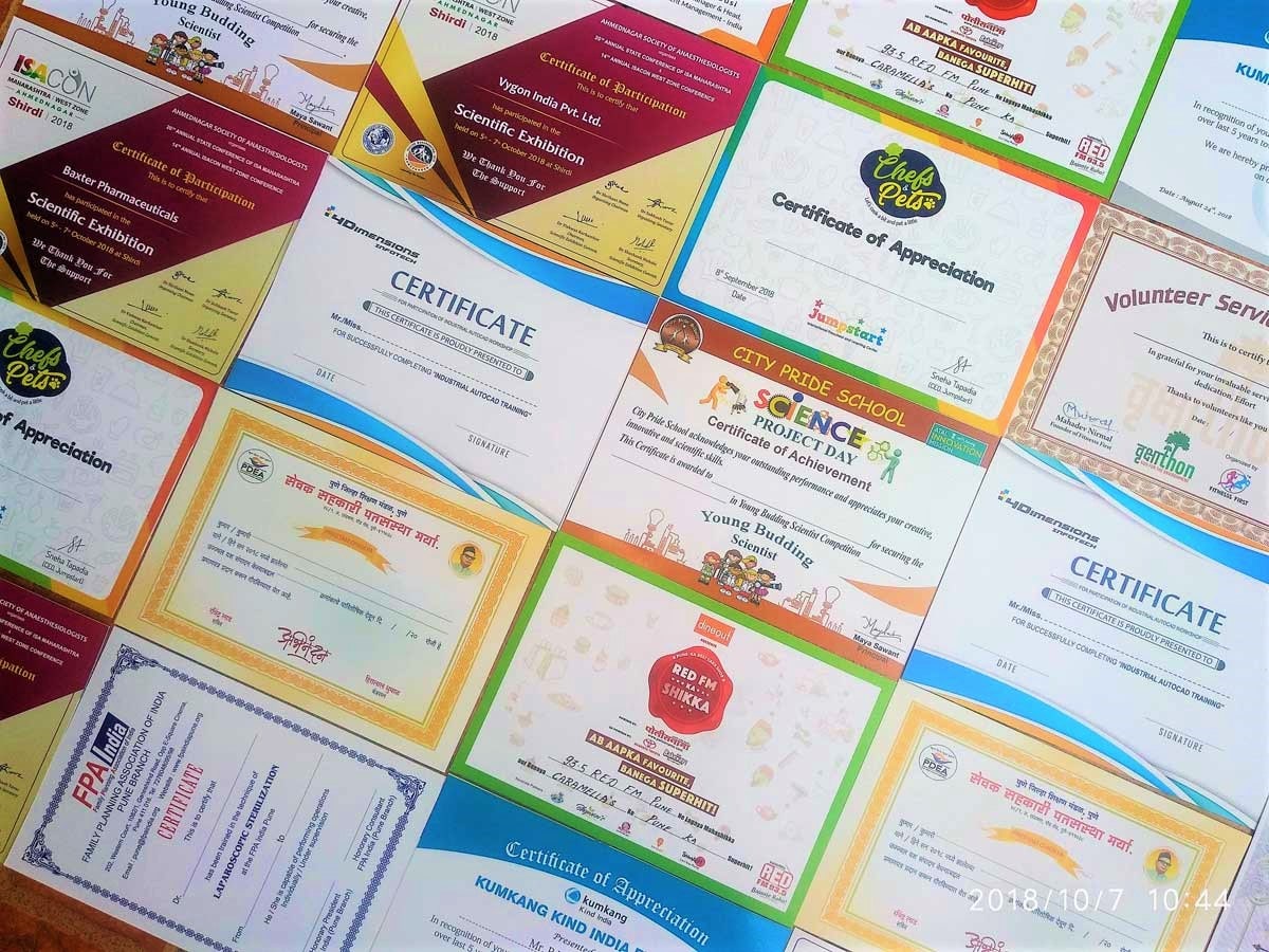 Let’s talk about the reason why you’re here – certificates printing service provided by the very best certificate printing shop in Pune.