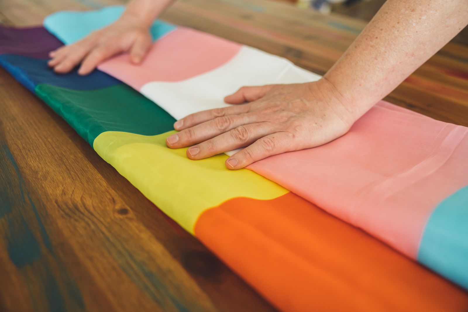 - On smooth, slightly silky fabric