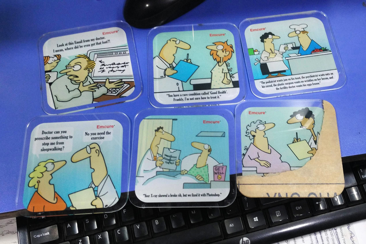 These coasters are always going to remain on the recipient’s desk/table. They will not be discarded (because after all, who doesn’t drink tea or coffee :-). And they always help retain your memory in the client’s mind.