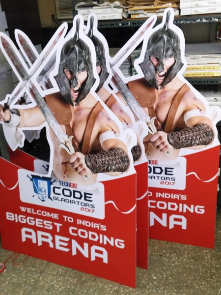 Marketing agencies are increasingly using shape cut standees to create selfie booths. Everybody has seen life sized cardboard cutouts of a bodybuilder or princess with a hollow space in place of their faces. The invitees to the party stand behind these cutouts for photo ops. Shown above are pictures of a similar job done for Siemens India.