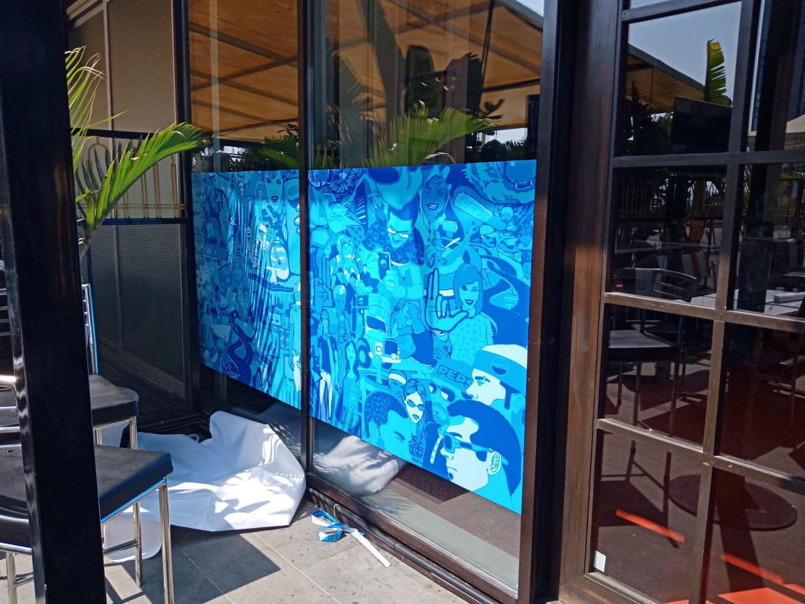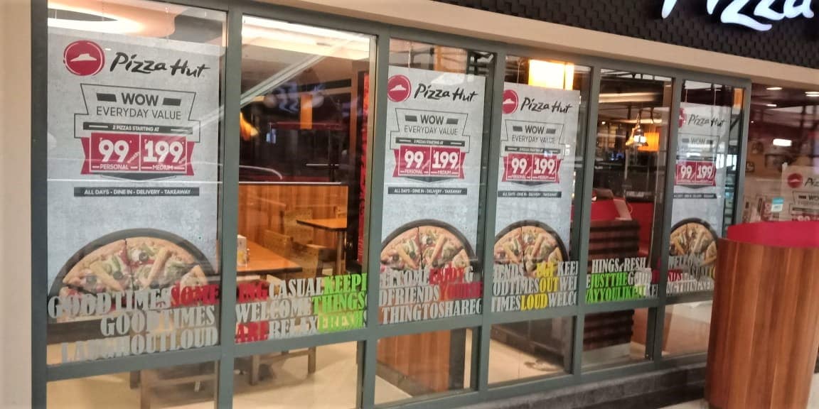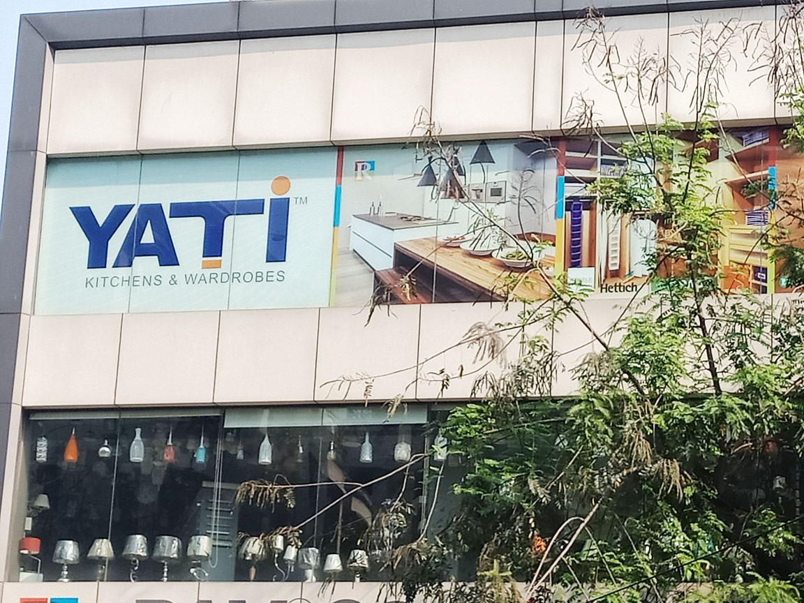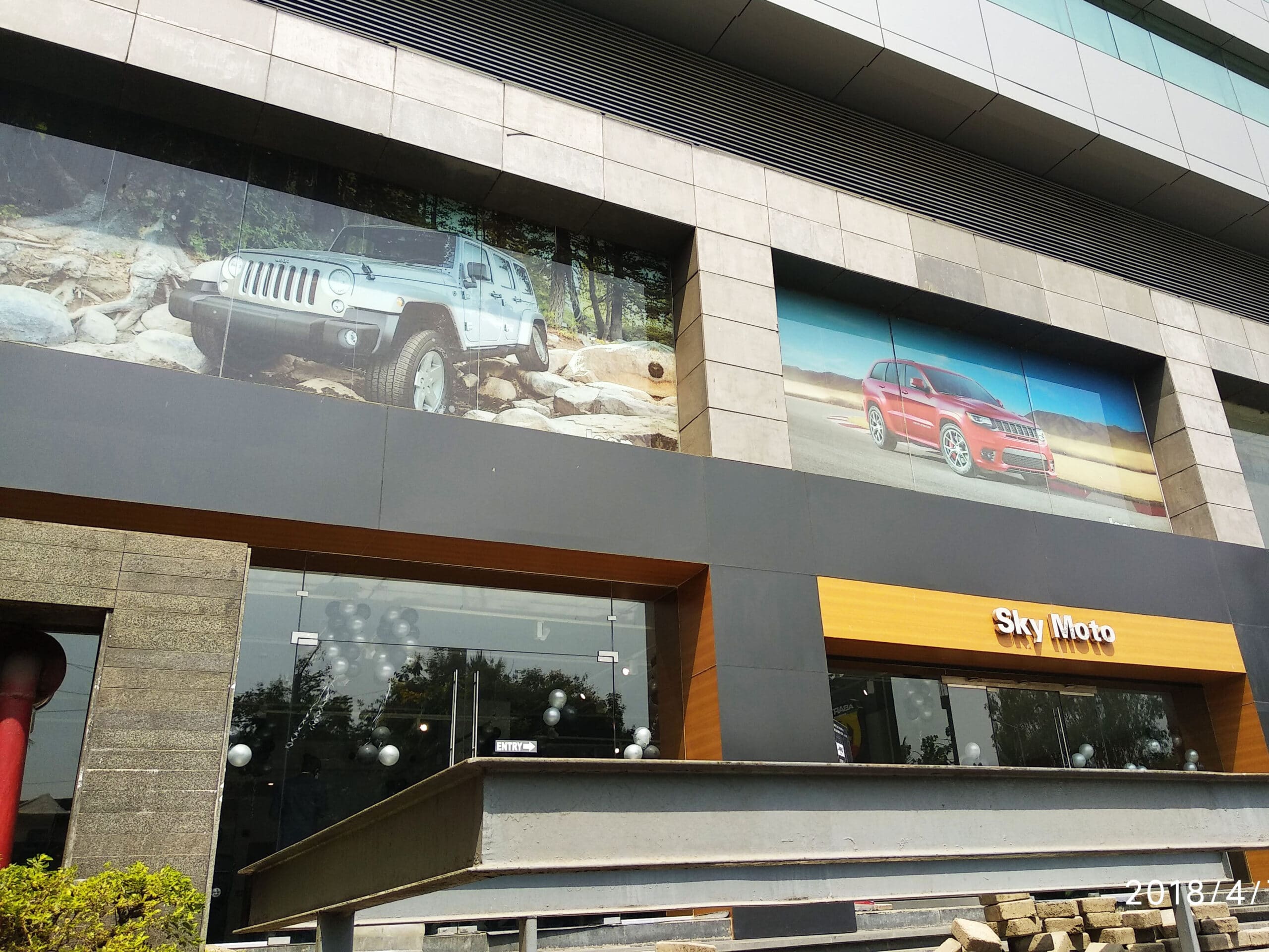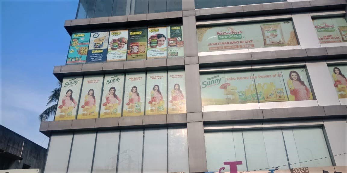 In such cases, we break the image up in tiles of 4 feet width. Each tile is printed and pasted separately onto the glass frontage. But when these tiles are joined together, they form a cohesive image.