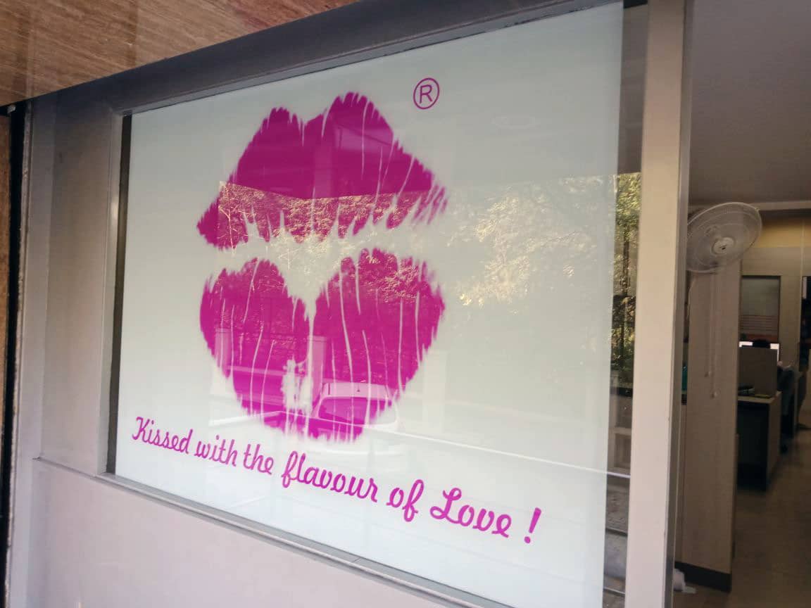 There is one more type of glass sticker printing. This film is partially opaque and partially transparent. Which means that you can see through the part of the glass where there is no image printed. The part where the inks are applied are opaque. This creates a very neat effect wherein the images seem to be floating in thin air!
