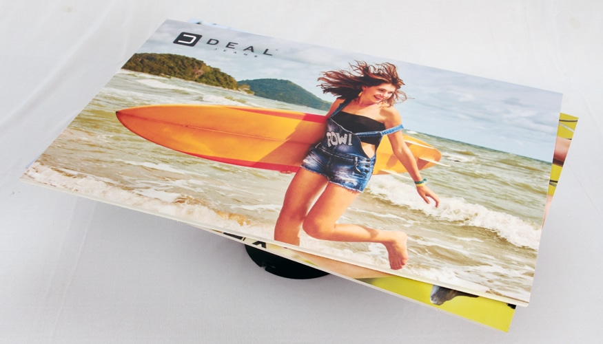 The 5 mm sunboard is also required for smaller-sized prints. For example, if a 3 mm thick, handheld print (like a restaurant menu card) wilts, it will create a bad impression. In this case, using thicker and more rigid material makes sense.