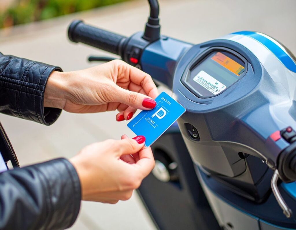 We use a regular sticker which has glue on the lower surface for two-wheelers. This is because for two-wheelers, bike parking stickers must be affixed to the body. (The most common locations include the mudguard, the windshield, or the fuel tank).