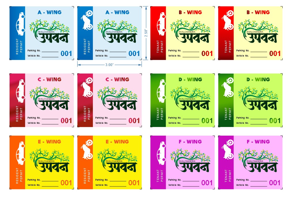 - Parking stickers for security and vehicle identification in cooperative housing societies