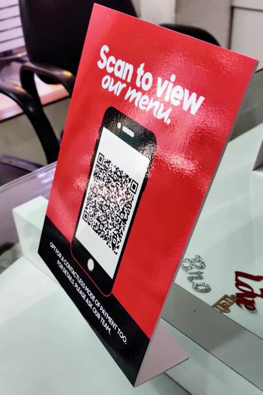 - Cash counters have tabletop sign holders bearing a PayTM QR code or a VISA / Mastercard logo. This shows the merchant’s ability to accept digital forms of payments.